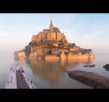 尖塔の上までしっかり見える、モン・サン=ミシェルのドローン空撮