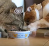 猫 VS 猫。残った餌をめぐっての終わりなき戦い